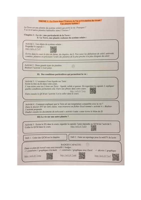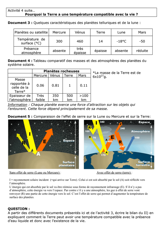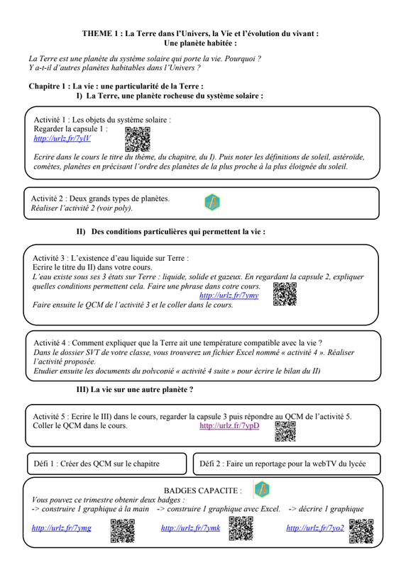 THEME 1 La Terre dans l'Univers, la Vie et l'évolution du vivant : Une planète habitée :